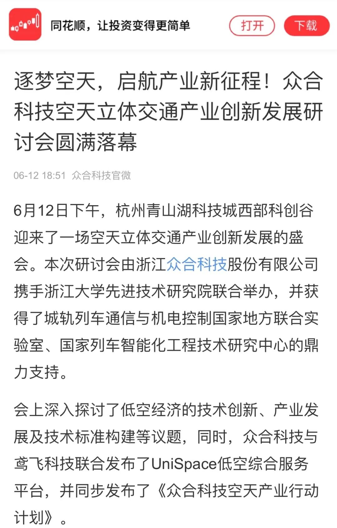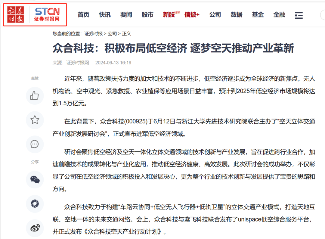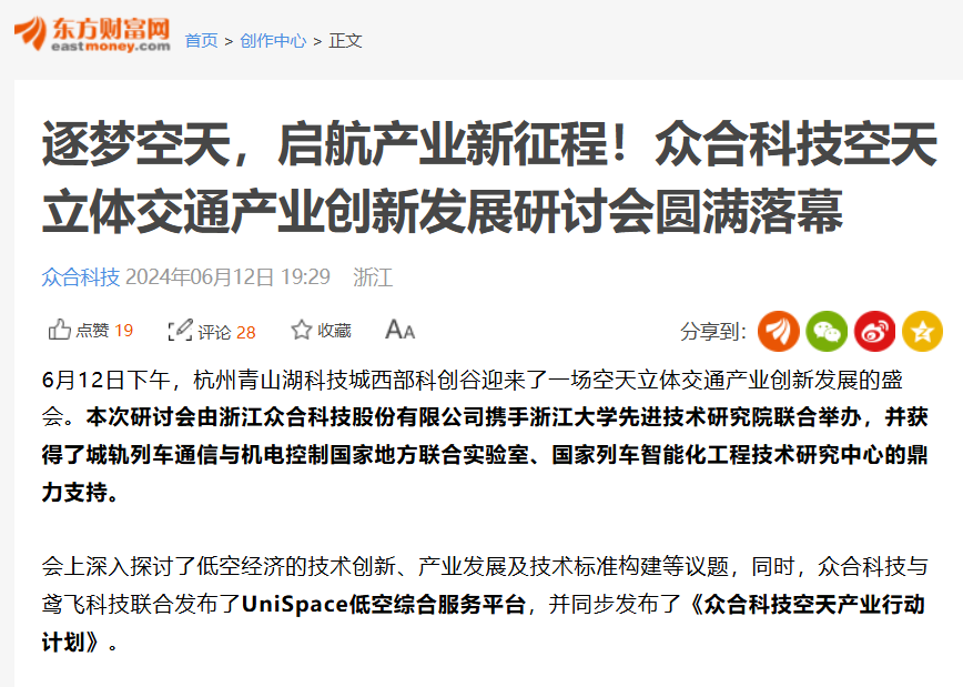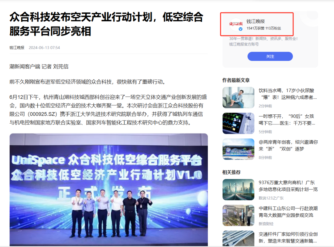 研討會(huì)由浙江眾合科技股份有限公司攜手浙江大學(xué)先進(jìn)技術(shù)研究院聯(lián)合舉辦。會(huì)上,眾合科技與鳶飛科技聯(lián)合發(fā)布了UniSpace低空綜合服務(wù)平臺(tái),并同步發(fā)布了《眾合科技空天產(chǎn)業(yè)行動(dòng)計(jì)劃》,展現(xiàn)了眾合科技致力于構(gòu)建“車(chē)路云協(xié)同+低空+低軌衛(wèi)星”的立體交通產(chǎn)業(yè),實(shí)現(xiàn)空地一體、天地互聯(lián)、立體空間的協(xié)同發(fā)展的堅(jiān)定決心。