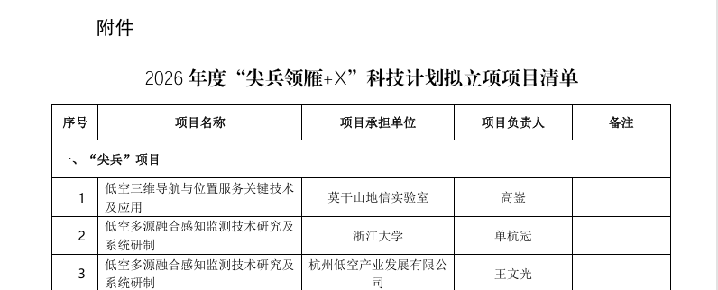 作為浙江省科技創新領域的核心引領工程,“尖兵領雁+X”科技計劃以服務國家和全省重大發展戰略為導向。其中,“尖兵”項目聚焦國家及省重大科技戰略需求,瞄準關鍵核心技術、戰略前沿技術、重大戰略產品及重大工程,采用全鏈條創新設計與一體化組織實施模式,整合頂尖科技資源、集中優勢力量開展協同攻關,實施“軍令狀”“里程碑”考核。“領雁”項目則圍繞戰略性、基礎性、前瞻性重大科學問題與基礎前沿技術等,強化跨部門、跨行業、跨領域的研發布局與協同創新,為區域經濟社會高質量發展提供持續性技術支撐與創新引領。